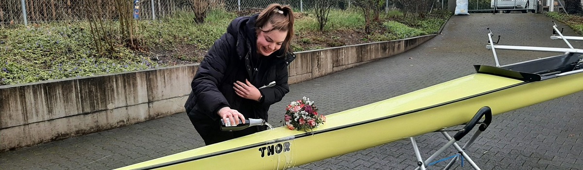 Vor dem Anrudern durfte der SRC ein weiteres „gelbes“ Boot aus dem Haus Empacher taufen!