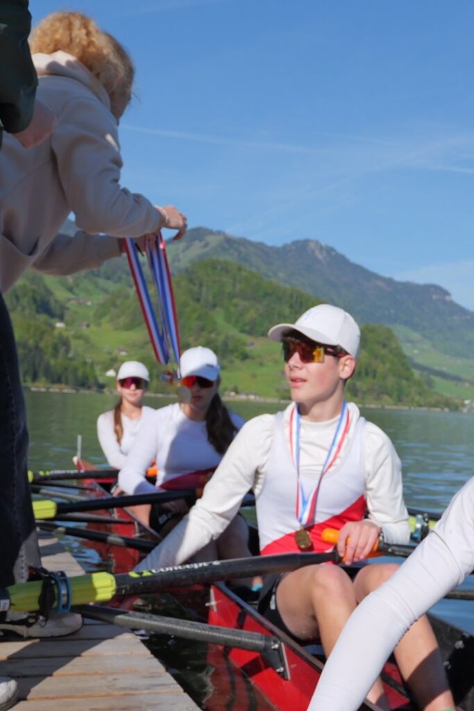 Am Sonntag wurden drei Fahrgruppen gebildet, wobei der dritten Gruppe Dank für das Putzen des heimeligen Ferienhauses Hinterberg gebührt. Medaillen durften auch in den Finals Athlet:innen des SRC abholen. Erfreulich war an diesem Wochenende das sonnige, aber nicht zu heisse Wetter, das gegenüber dem Schneesturm des Vorjahres eine nette Abwechslung bot, und obwohl es zwischendurch Wellen und Verspätungen gab, hielten sich diese in Grenzen. Einem Doppelvierer widerfuhr ein Ruderbruch während dem Rennen, was für Aufruhr sorgte, doch unser Material blieb unversehrt.