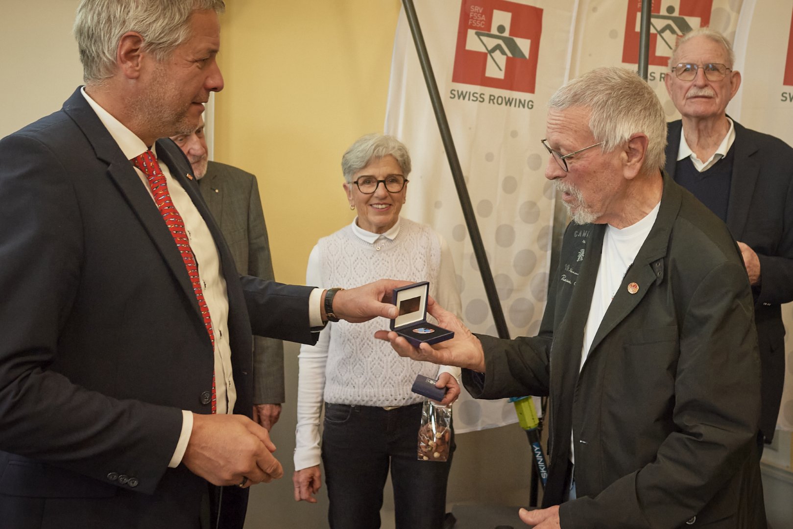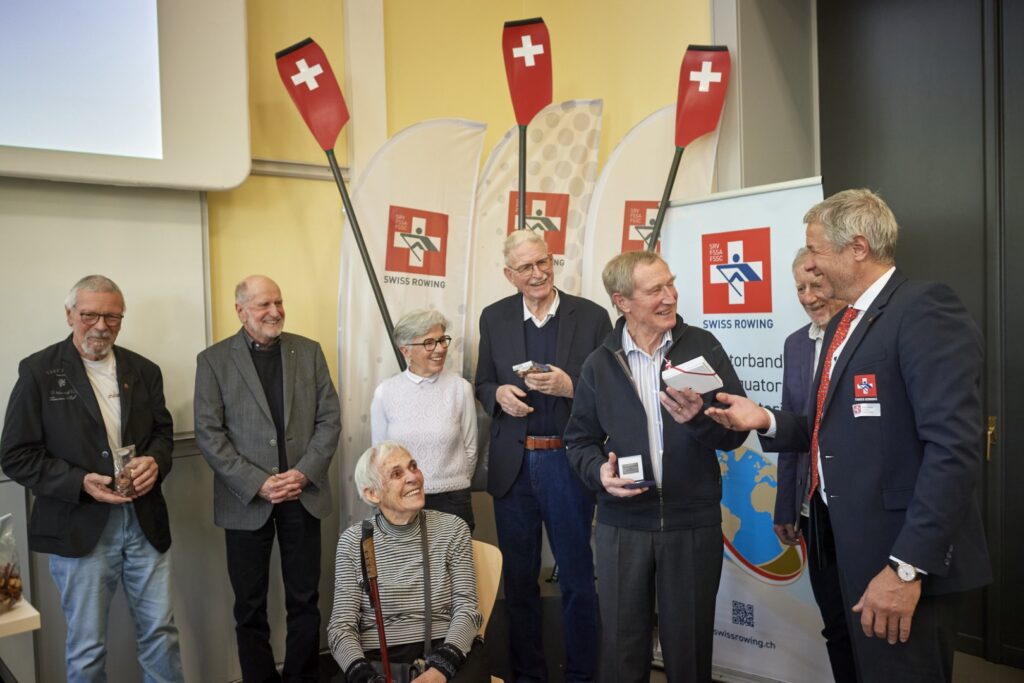 Rund um die Erde rudern geht natürlich nicht wirklich. Der Schweizerische Ruderverband Swissrowing (SRV) schreibt trotzdem seit drei Jahren das Äquatorband aus und ehrt mit diesem Preis anlässlich seiner Delegiertenversammlung jene Ruder:innen, die bei der Ausübung ihrer Sportart mindestens die für eine Erdumrundung erforderliche Strecke von 40’075 km zurückgelegt haben. Die einmalige Umrundung wird mit Bronze geehrt, zweimal rund um den Globus verdient Silber. Dieses Jahr kam die Ehrung gleich neun Mitgliedern des Solothurner Ruderclubs zu. Peter Forster mit 91’353 km und Hans Rindlisbacher mit 80’920 km gewannen sogar die silberne Auszeichnung.
