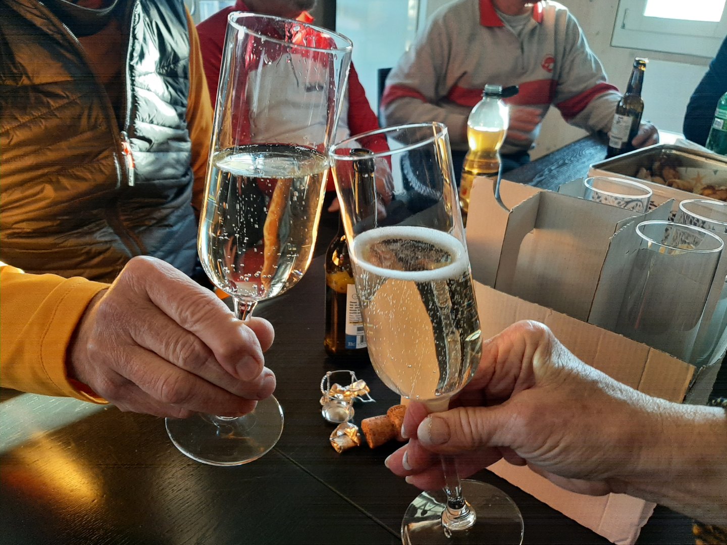 Während die Erwachsenen mit Daunenjacken oder sonst warm eingepackt ruderten, schlotterten nach dem Auswassern viele der jungen Regattierenden tapfer in eher dünner Ruderbekleidung. Gut, dass die Silvesterausfahrt jeweils eher kurz ist und auch sie sich am feinen Apéro im Clubraum aufwärmen konnten, wo man sich gemeinsam einen guten Rutsch ins 2026 wünschte.
