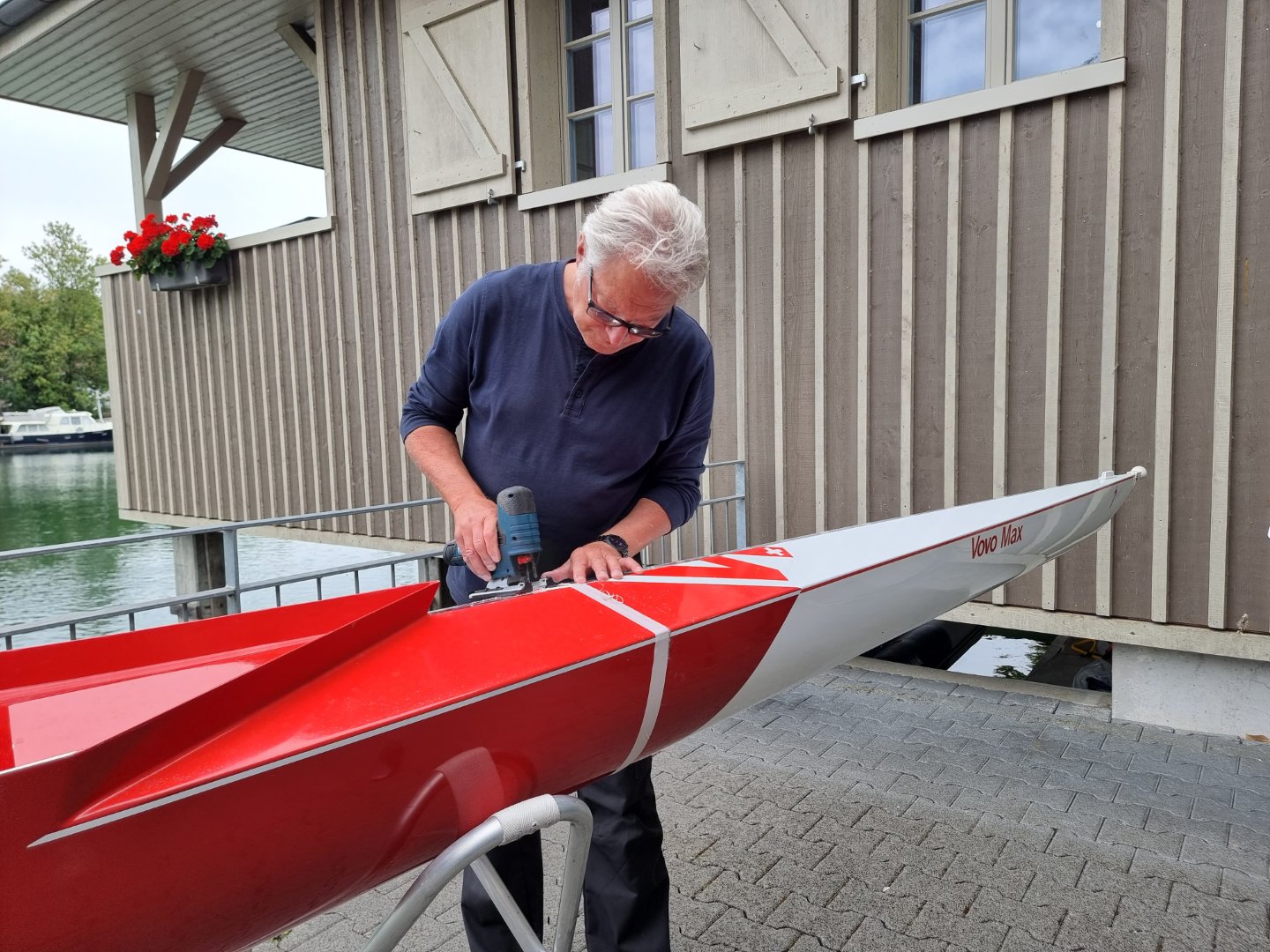 Am bereits herbstlichen Bootsunterhaltstag geschah am Nachmittag etwas für die SRC-Geschichtsbücher, schreibt Tony Zweili: „Wir haben den Vovo Max ‚ausgebeindlet‘ und Peter Forster brachte den Bug zur Marianne.“ Marianne Portmann hatte den neuen Rennachter 1994 gespendet.